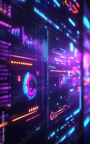 © pjjaruwan, Obraz premium A vibrant SEO visibility dashboard displaying high ranking keywords, with graphs and digital data on increasing online presence