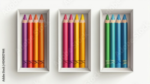 Fototapeta premium A Vibrant Set Of Boxes Each Filled With Colorful Crayons Arranged In A Bright...