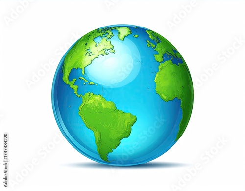© Fahri, Naklejka premium A vibrant, shiny globe depicts the Earth with continents highlighted in green