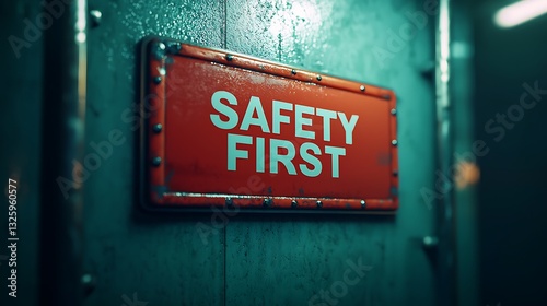 Fototapeta premium A vibrant sign reading "SAFETY FIRST" on a textured background, emphasizing...