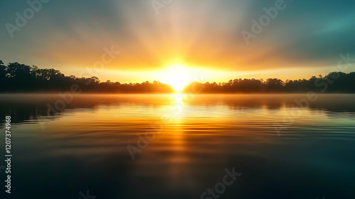 Obraz premium A vibrant sky and a serene wheat field with a golden sunset