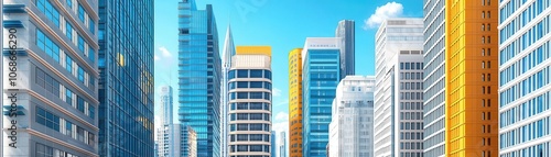 Obraz premium A vibrant skyline showcasing modern skyscrapers under a clear blue sky,...
