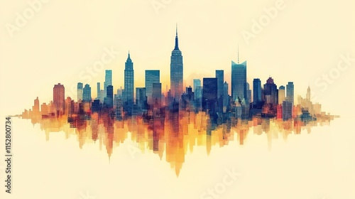 Naklejka premium A vibrant skyline silhouette with a colorful gradient, depicting an urban...