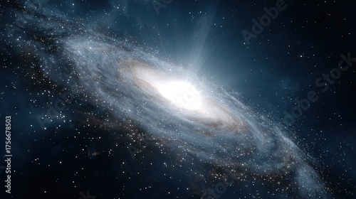 © Quail 8s Studio, Fototapeta premium A vibrant spiral galaxy with a bright central core surrounded by countless stars and nebulae in deep space