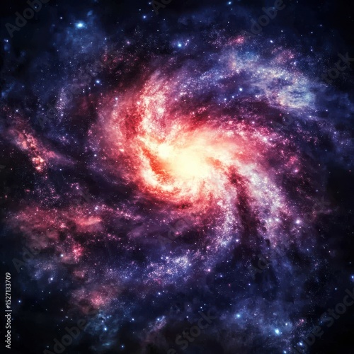Naklejka premium A vibrant spiral galaxy with bright center and swirling arms of stars and...