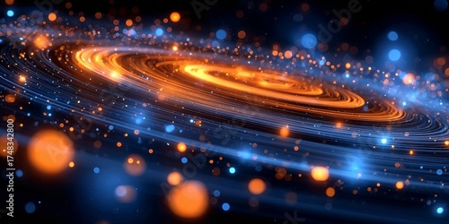 © meng, Obraz premium A vibrant spiral galaxy with glowing rings and scattered stars in deep space