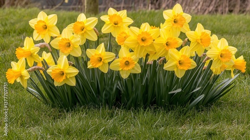 Fototapeta premium A vibrant spring meadow filled with yellow daffodils and green grass,...