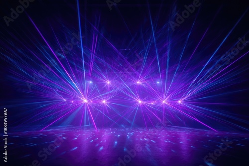 © Rumah, Naklejka premium A vibrant stage filled with purple and blue laser beams creating a dynamic light show