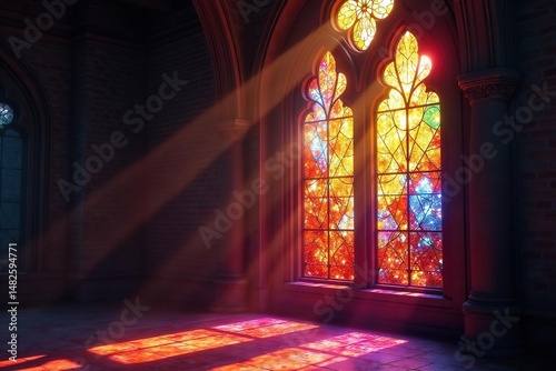 Obraz premium A vibrant stained glass window, sunlight streaming through, window, light