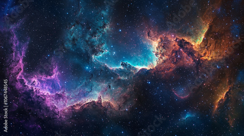 © Maximusdn, Fototapeta premium A vibrant starry night sky with swirling galaxies, bright stars, and colorful nebula clouds.