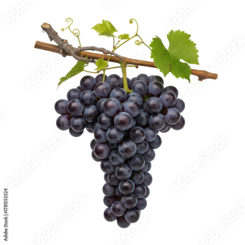 © Gustav, Fototapeta premium A Vibrant Still Life of Dark Grapes Hanging from a Vine, Perfect for Food and Beverage Concepts