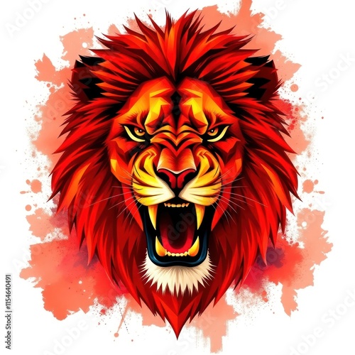 Obraz premium A vibrant, stylized illustration of a roaring lion's head with dynamic colors...