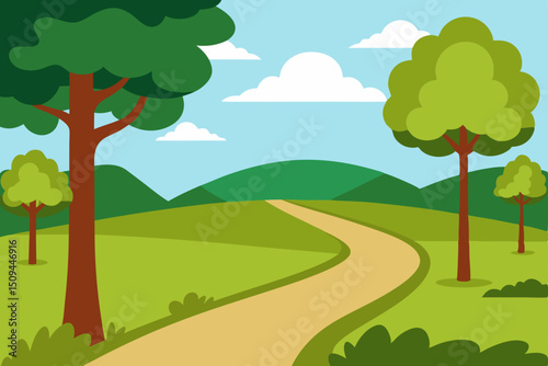 Fototapeta premium A vibrant summer landscape scene with a country road winding through green...