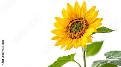 Obraz premium A vibrant sunflower blooming against a clean white background in natural light