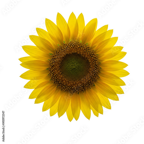 Fototapeta premium A vibrant sunflower, bursting with summer's golden warmth and joyful energy, isolated against a crisp white background.