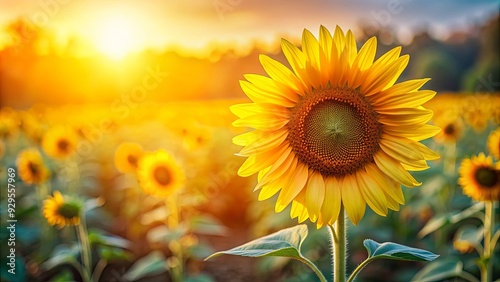 Fototapeta premium A vibrant sunflower in full bloom illuminated by warm sunlight against a...