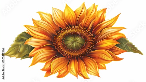 © Naeem, Fototapeta premium A vibrant sunflower in full bloom with golden petals and a deep brown center, isolated on white.