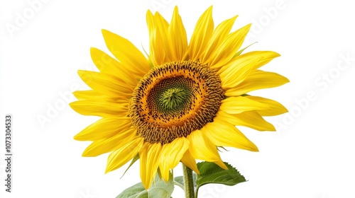 Fototapeta premium A vibrant sunflower showcasing its bright yellow petals against a white...