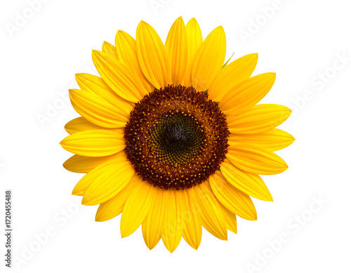 © SulasTree, Fototapeta premium A vibrant sunflower with bright yellow petals and a rich brown center, symbolizing warmth and positivity.