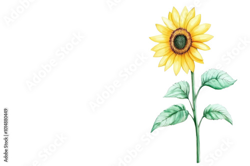 © Sweettymojidesign, Obraz premium A vibrant sunflower with green leaves, isolated on transparent background.