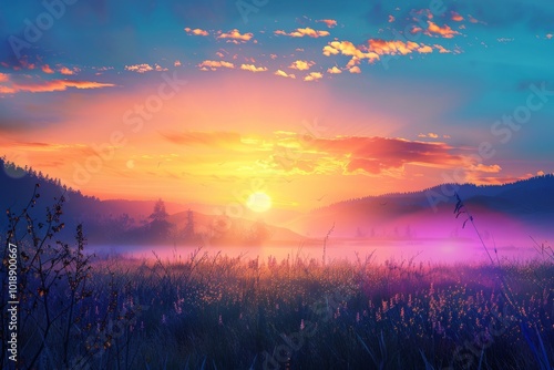 Fototapeta premium a vibrant sunrise illuminating a peaceful landscape for International Day of...