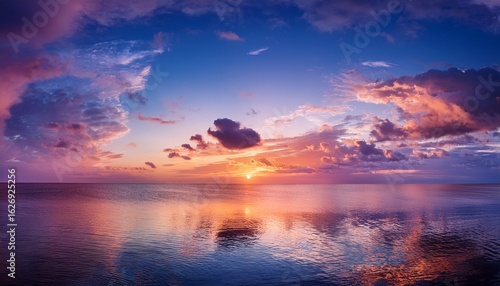 © James, Naklejka premium a vibrant sunset fills the sky with shades of pink orange and blue reflecting on the serene waters of the sea gentle clouds float above creating a peaceful atmosphere