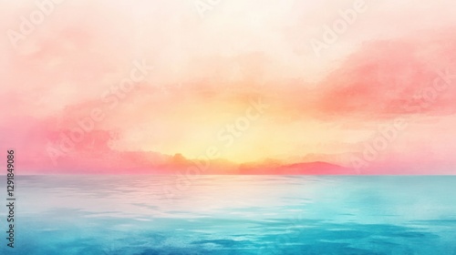 Obraz premium A vibrant sunset over a calm ocean, blending soft pinks and oranges into serene blues.