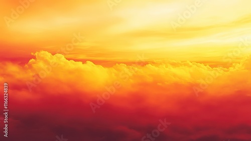 © Lensa, Obraz premium A vibrant sunset over clouds, showcasing warm orange and yellow hues.