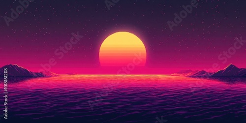 Fototapeta premium A vibrant sunset over the water, featuring vivid pink and orange hues,...