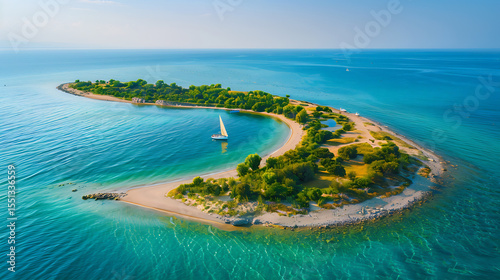 Obraz premium A vibrant sunset paints the sky with fiery hues, casting a warm glow over a...