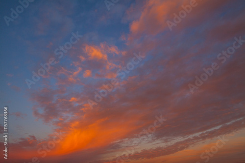 Fototapeta premium A vibrant sunset sky with dramatic clouds in shades of orange, pink, and blue.