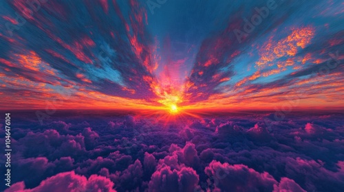 Fototapeta premium A vibrant sunset where the jellybean horizon glows beneath cotton candy...