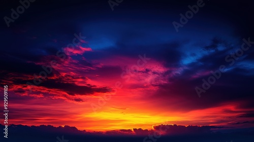 © Boinah, Fototapeta premium A vibrant sunset with a blend of red, orange, and blue hues illuminating the sky.