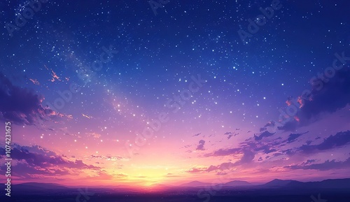 © andyaziz6, Fototapeta premium A vibrant sunset with a starry sky.