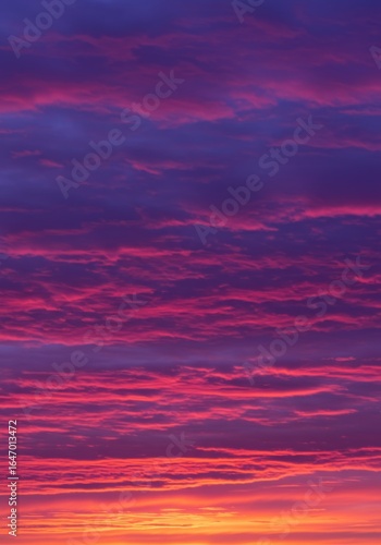 © homan, Obraz premium A vibrant sunset with streaky purple and pink clouds.
