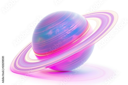 Obraz premium A vibrant, surreal depiction of a planet with colorful rings, evoking a...