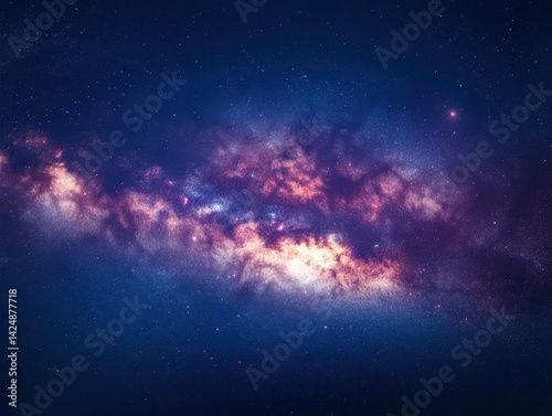 © AiPhotoSale, Fototapeta premium A vibrant, sweeping view of the Milky Way galaxy, awash in pinks, purples, and blues against a dark, star-filled sky