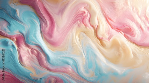 Obraz premium A vibrant, swirling pattern of pastel pinks, blues, and creams creates a...