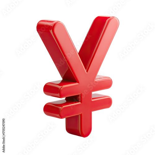 © tolem929, Obraz premium A vibrant, three-dimensional rendering of a red yen symbol, exhibiting a glossy, plastic-like texture