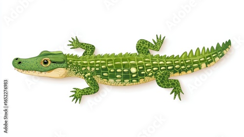 Naklejka premium A vibrant top view illustration of a crocodile, featuring a modern cartoon...