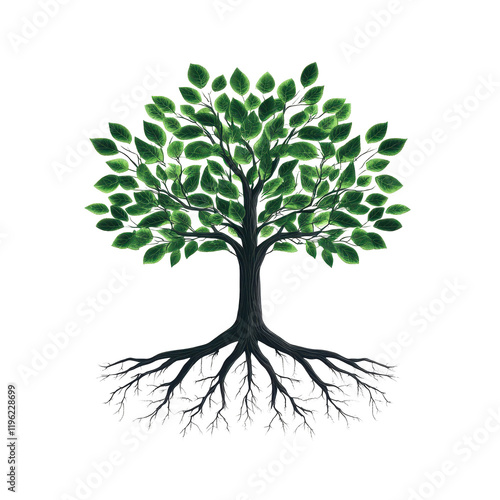 Fototapeta premium A vibrant tree with lush green leaves and strong roots symbolizing growth and...