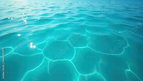 Obraz premium A vibrant turquoise water surface, dappled with sunlight reflections,...