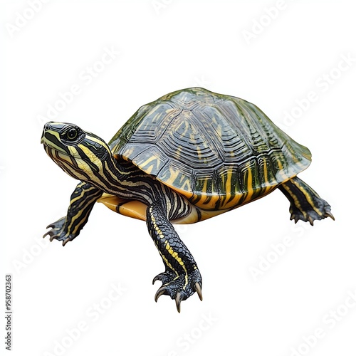 © NewMaii, Obraz premium A vibrant turtle with striking patterns, showcasing its natural beauty and unique shell design in a lively pose.