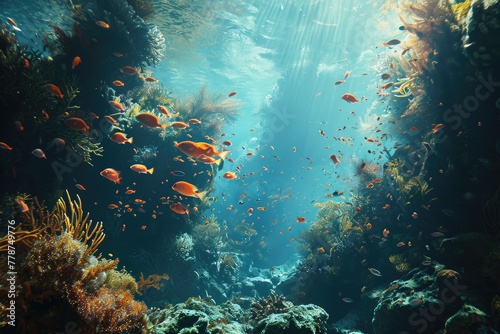 Fototapeta premium A vibrant underwater scene capturing the Great Barrier Reef in Australia , AI...