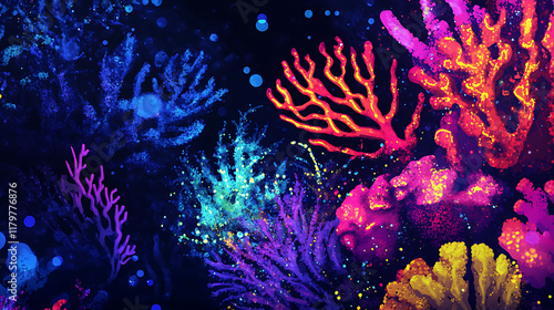 © Bakwan, Obraz premium A vibrant underwater scene featuring colorful corals and marine life.