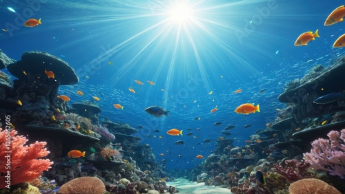 © nose, Naklejka premium A vibrant underwater scene teeming with colorful marine life