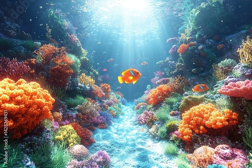 © boler, Obraz premium A vibrant underwater scene with colorful coral and sunlight