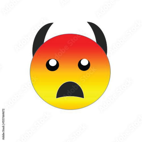 © MDLIMON, Obraz premium A vibrant vector illustration depicts a devilish red smiley face, a cheerful and funny cartoon icon expressing mischievous happiness