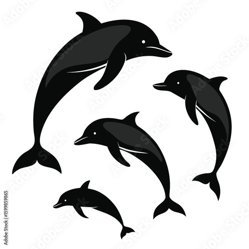 Fototapeta premium A vibrant vector illustration set of dolphins jumping in the ocean waves