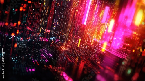 Naklejka premium A vibrant visualization of financial data featuring colorful graphs and glowing elements. This abstract image represents analysis, trends, and technology in finance and b